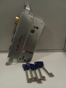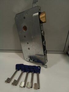 Suministro y colocación de cerradura Orengo de gorjas para porteria. Suministrada con 3 llaves.
