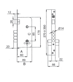 Caja Central de cerradura ARCU Modelo 509 Nueva para perfil europeo (pestillos semi-cuadrados / ovalados).