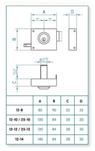 Cerradura JIS Modelo 12/12 de golpe y llave.