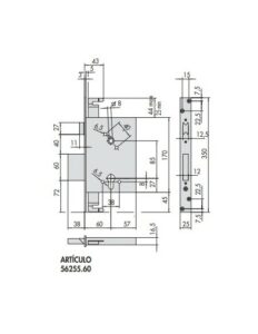 Cerradura embutida CISA modelo 57255 de golpe y llave, con varillas.