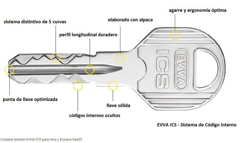 Bombillo de puntos de alta seguridad EVVA ICS de perfil suizo.