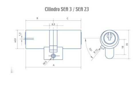 Bombillo de alta seguridad EZCURRA SEA 23 (actualmente SEA 2 ) de perfil suizo.