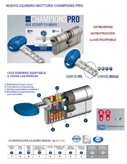 Bombillo europeo de alta seguridad MOTTURA CHAMPIONS PRO.
