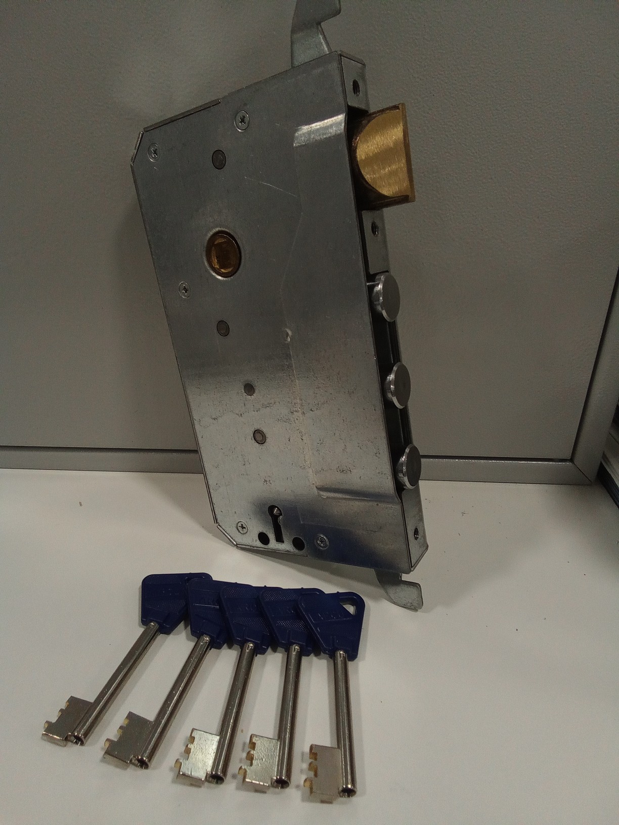 Caja central ARCU 509 ANTIGUA (bulones redondos) de golpe y llave. Entrada de 60 mm. Mano izquierda / derecha. Suministrada con 5 llaves de gorjas.