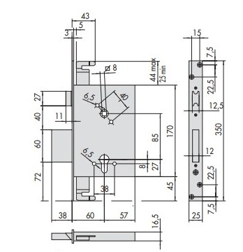 Cerradura Cisa Mod. 56255 de embutir de golpe con varillas y llave de perfil europeo.