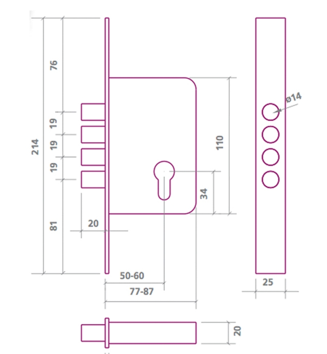 Cerradura embutida EZCURRA Modelo 701B de sólo llave perfil europeo.