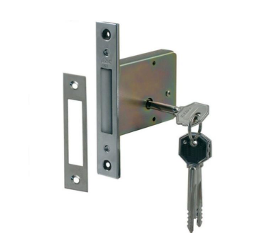 Cerradura de embutir ISEO con cilindro de pasador en acero cromado. Suministrado con tres llaves de 3 espigas.