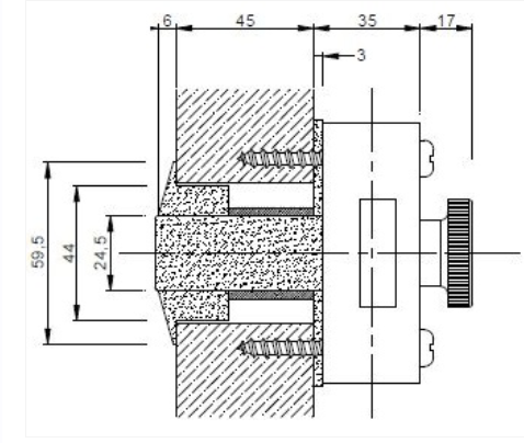 Escudo latón macizo fijado al interior por 4 tornillos.