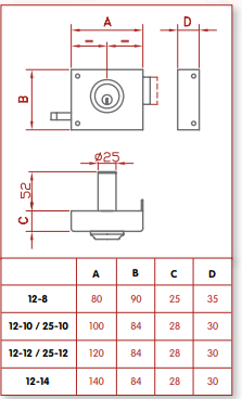 Cerradura JIS Modelo 12/12 de golpe y llave.
