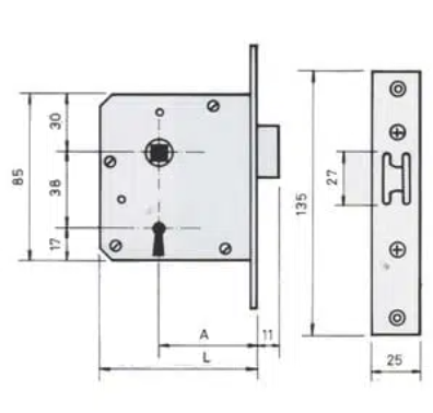 Cerradura ORENGO 1300 de gorjas, para embutir, de solo golpe.