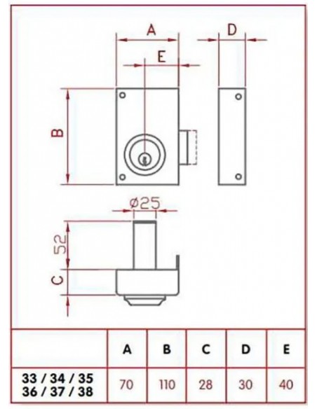 Cerradura JIS Modelo 34/7 sobrepuesta de golpe y llave.