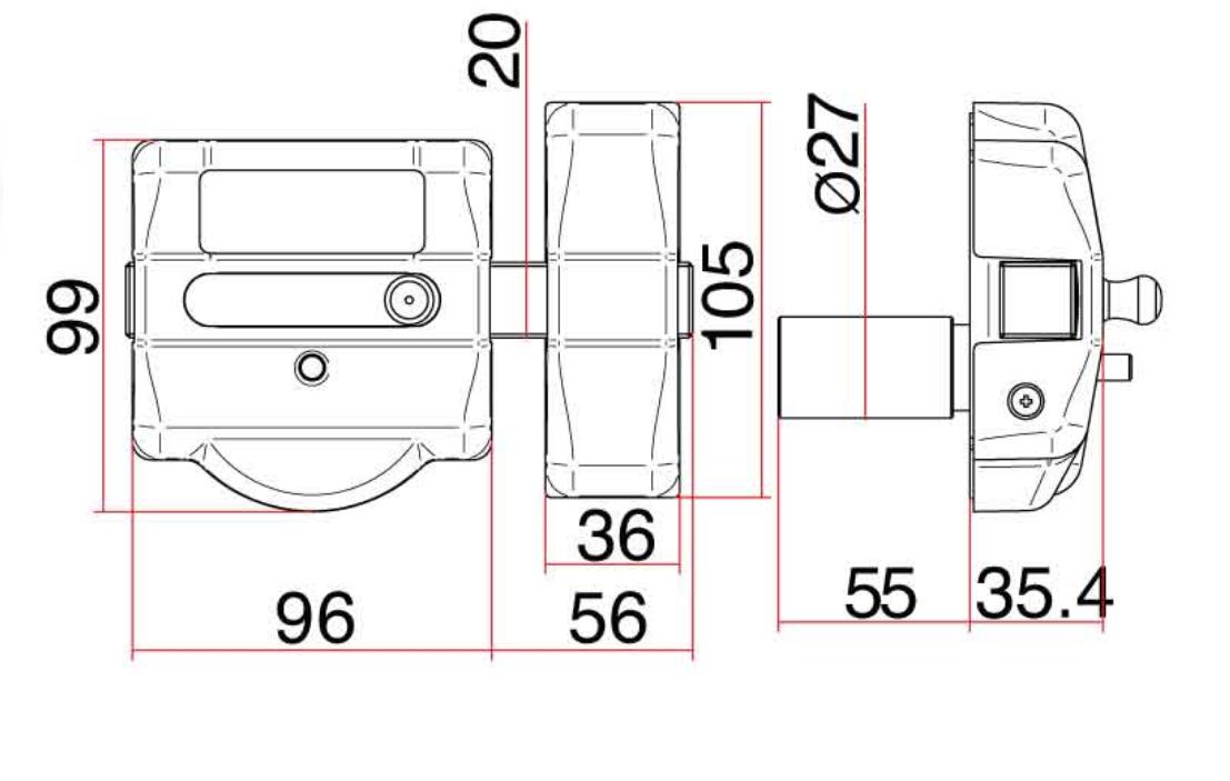 La placa del cerrojo, el piñón y el pulsador son de acero inoxidable.