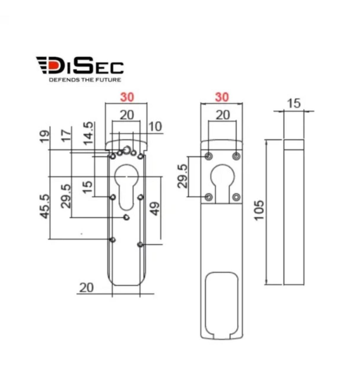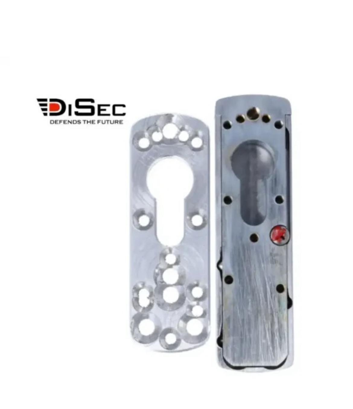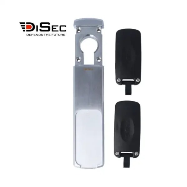 Escudo Magnético DISEC MG033 para cilindros instalados en cerraduras de perfil estrecho en carpintería de aluminio. Suministrado con 2 llaves magnéticas y tarjeta de propiedad.