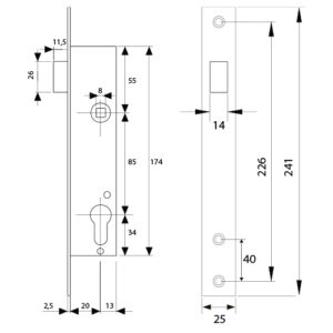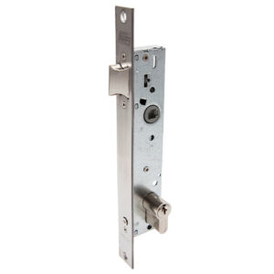 Cerradura embutida TESA Mod. 2219 de solo golpe. Suministrada sin bombillo. Mano reversible. Aguja 20,25,30,35. Ejes 85mm. Frente inox.