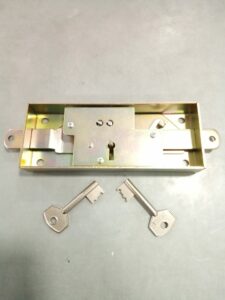 Caja central UCEM 5080T con resbalón y bulones, con cierre de 2 vueltas. Distancia entre ejes 85. Aguja 50.